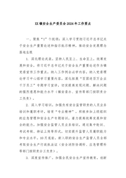 / 【七哥公文】2024年:XX镇安全生产委员会2024年工作要点+更多免费公文+VX:QiGeGongWen2024