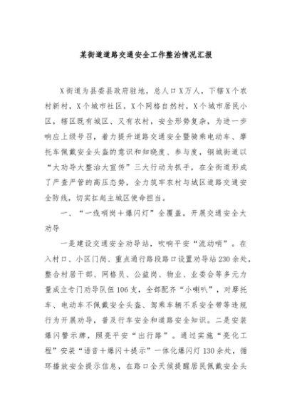 / 【七哥公文】2024年:某街道道路交通安全工作整治情况汇报+更多免费公文+VX:QiGeGongWen2024