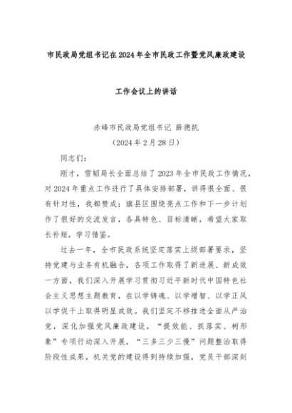 【七哥公文】2024年:市民政局党组书记在2024年全市民政工作暨党风廉政建设工作会议上的讲话+更多免费公文+VX:QiGeGongWen2024