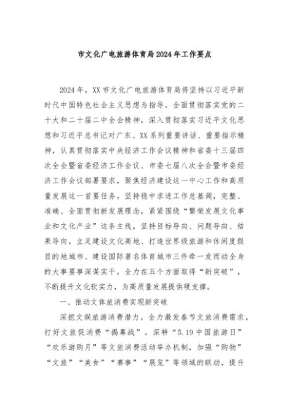 / 【七哥公文】2024年:市文化广电旅游体育局2024年工作要点+更多免费公文+VX:QiGeGongWen2024