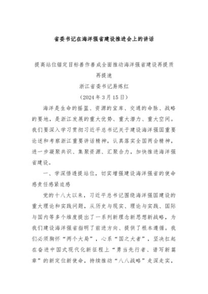 / 【七哥公文】2024年:省委书记在海洋强省建设推进会上的讲话+更多免费公文+VX:QiGeGongWen2024