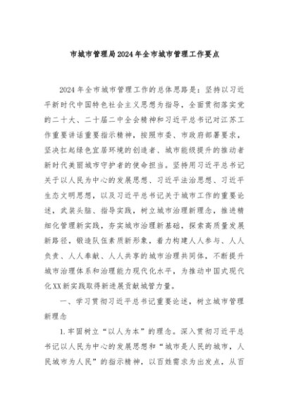 / 【七哥公文】2024年:市城市管理局 2024年全市城市管理工作要点+更多免费公文+VX:QiGeGongWen2024