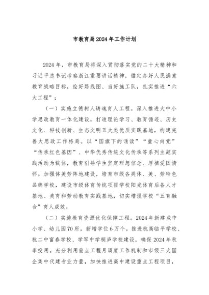 / 【七哥公文】2024年:市教育局2024年工作计划+更多免费公文+VX:QiGeGongWen2024