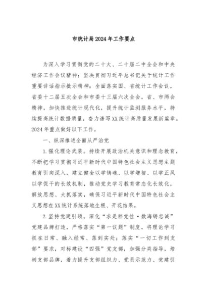 / 【七哥公文】2024年:市统计局2024年工作要点+更多免费公文+VX:QiGeGongWen2024
