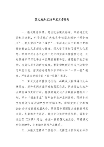 / 【七哥公文】2024年:区文旅局2024年度工作计划+更多免费公文+VX:QiGeGongWen2024