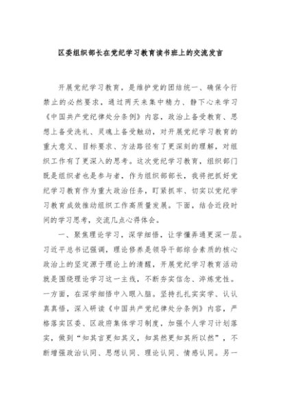 / 【七哥公文】2024年:区委组织部长在党纪学习教育读书班上的交流发言+更多免费公文+VX:QiGeGongWen2024
