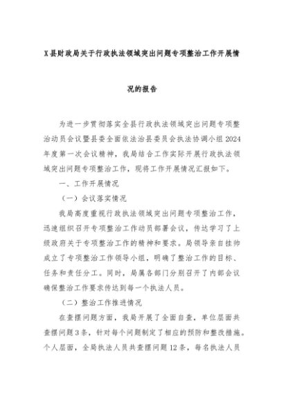 【七哥公文】2024年:X县财政局关于行政执法领域突出问题专项整治工作开展情况的报告+更多免费公文+VX:QiGeGongWen2024