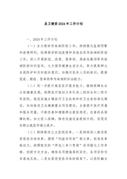 / 【七哥公文】2024年:县卫健委2024年工作计划+更多免费公文+VX:QiGeGongWen2024