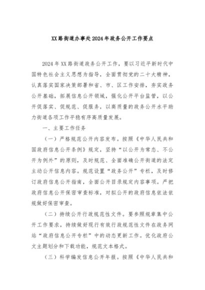 / 【七哥公文】2024年:XX路街道办事处2024年政务公开工作要点+更多免费公文+VX:QiGeGongWen2024
