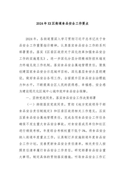 【七哥公文】2024年:2024年XX区街道食品安全工作要点+更多免费公文+VX:QiGeGongWen2024