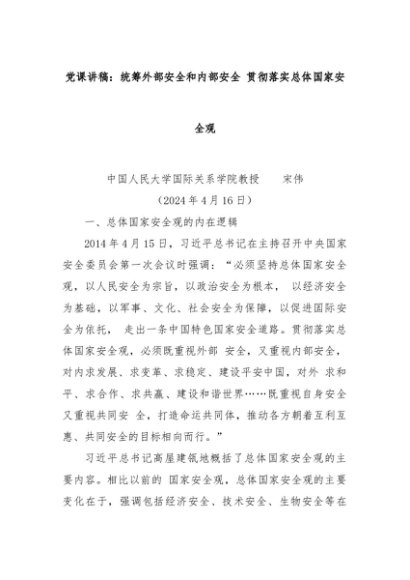 【七哥公文】2024年:党课讲稿:统筹外部安全和内部安全 贯彻落实总体国家安全观+更多免费公文+VX:QiGeGongWen2024
