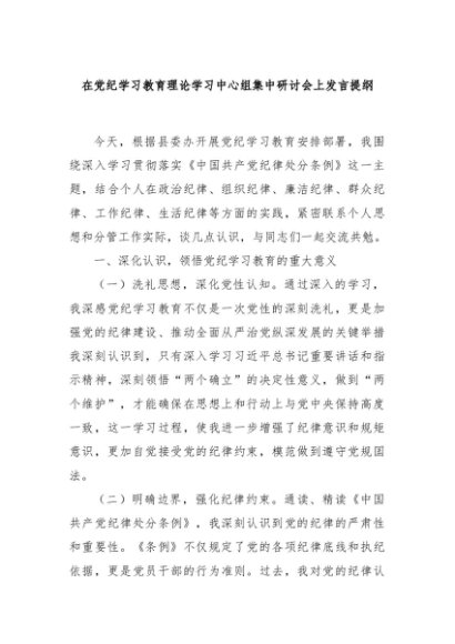 / 【七哥公文】2024年:在党纪学习教育理论学习中心组集中研讨会上发言提纲+更多免费公文+VX:QiGeGongWen2024