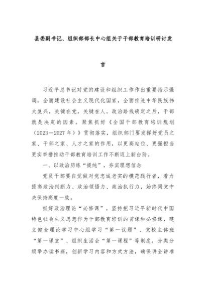 【七哥公文】2024年:县委副书记、组织部部长中心组关于干部教育培训研讨发言+更多免费公文+VX:QiGeGongWen2024