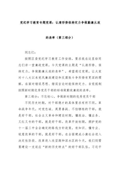 【七哥公文】2024年:党纪学习教育专题党课:认清形势保持定力争做勤廉从政的表率(第三部分)+更多免费公文+VX:QiGeGongWen2024