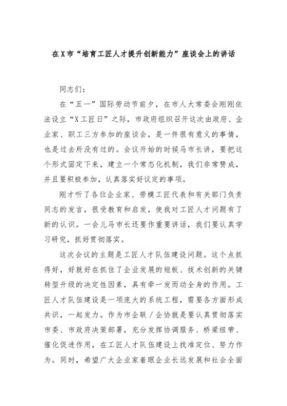 / 【七哥公文】2024年:在X市“培育工匠人才提升创新能力”座谈会上的讲话+更多免费公文+VX:QiGeGongWen2024
