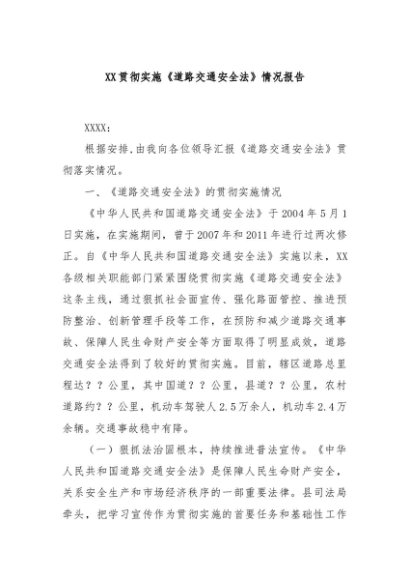 / 【七哥公文】2024年:XX贯彻实施《道路交通安全法》情况报告+更多免费公文+VX:QiGeGongWen2024
