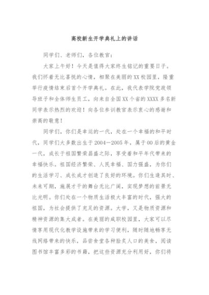 【七哥公文】2024年:高校新生开学典礼上的讲话+更多免费公文+VX:QiGeGongWen2024