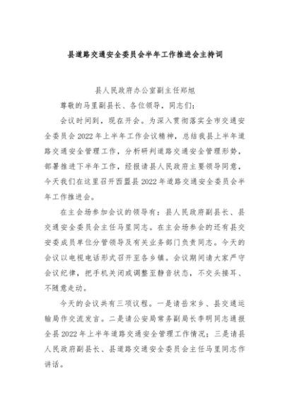 【七哥公文】2024年:县道路交通安全委员会半年工作推进会主持词+更多免费公文+VX:QiGeGongWen2024