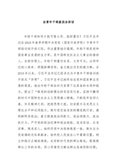 / 【七哥公文】2024年:在青年干部座谈会讲话+更多免费公文+VX:QiGeGongWen2024