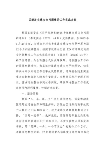 / 【七哥公文】2024年:区道路交通安全问题整治工作实施方案+更多免费公文+VX:QiGeGongWen2024
