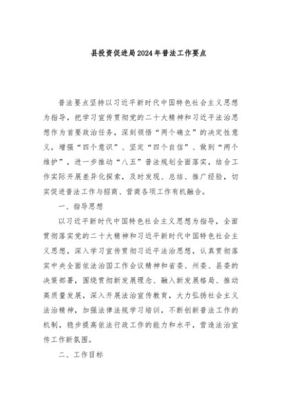 / 【七哥公文】2024年:县投资促进局2024年普法工作要点+更多免费公文+VX:QiGeGongWen2024