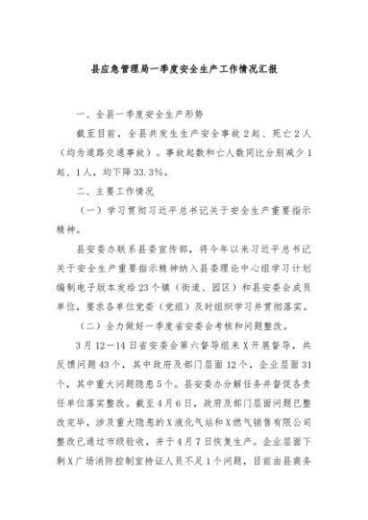 / 【七哥公文】2024年:县应急管理局一季度安全生产工作情况汇报+更多免费公文+VX:QiGeGongWen2024