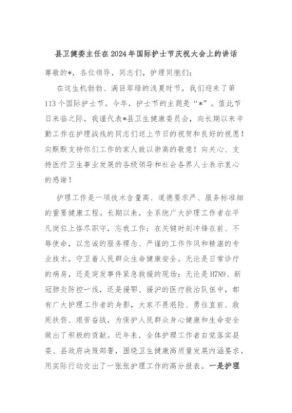 【七哥公文】2024年:县卫健委主任在2024年国际护士节庆祝大会上的讲话+更多免费公文+VX:QiGeGongWen2024