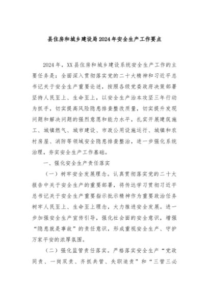 / 【七哥公文】2024年:县住房和城乡建设局2024年安全生产工作要点+更多免费公文+VX:QiGeGongWen2024