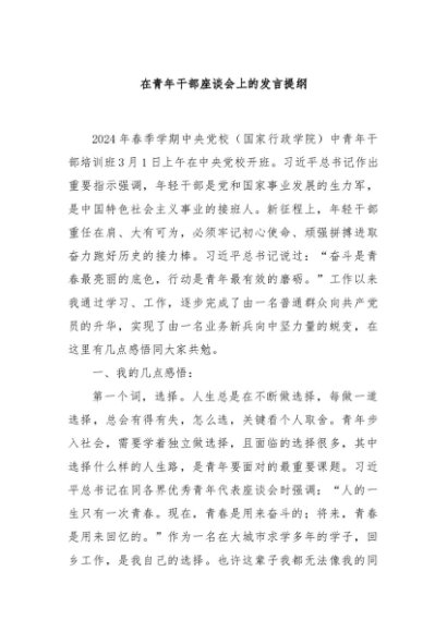 / 【七哥公文】2024年:在青年干部座谈会上的发言提纲+更多免费公文+VX:QiGeGongWen2024