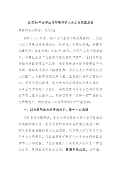 / 【七哥公文】2024年:在2024年全省生态环境保护大会上的交流发言+更多免费公文+VX:QiGeGongWen2024