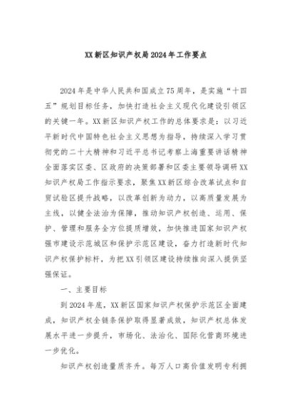 / 【七哥公文】2024年:XX新区知识产权局2024年工作要点+更多免费公文+VX:QiGeGongWen2024