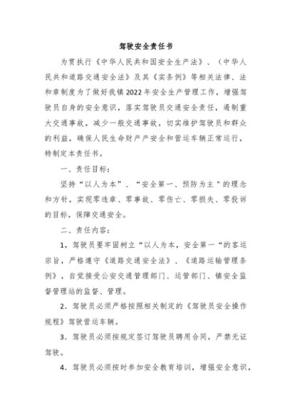 / 【七哥公文】2024年:驾驶安全责任书+更多免费公文+VX:QiGeGongWen2024