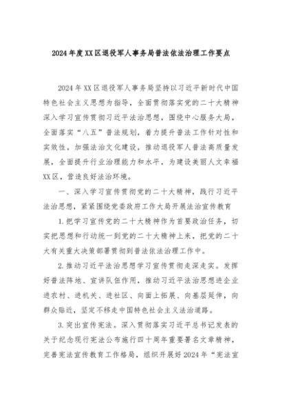 【七哥公文】2024年:2024年度XX区退役军人事务局普法依法治理工作要点+更多免费公文+VX:QiGeGongWen2024