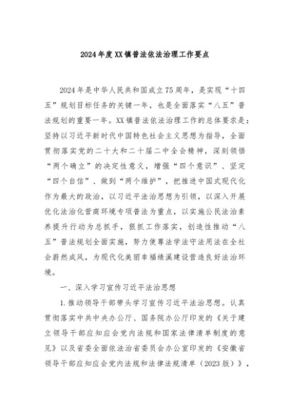 【七哥公文】2024年:2024年度XX镇普法依法治理工作要点+更多免费公文+VX:QiGeGongWen2024