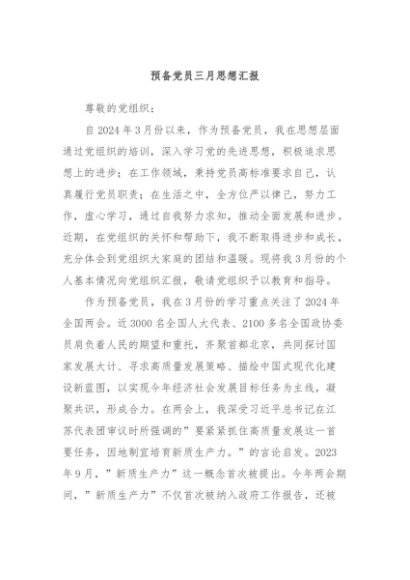 / 【七哥公文】2024年:预备党员三月思想汇报+更多免费公文+VX:QiGeGongWen2024