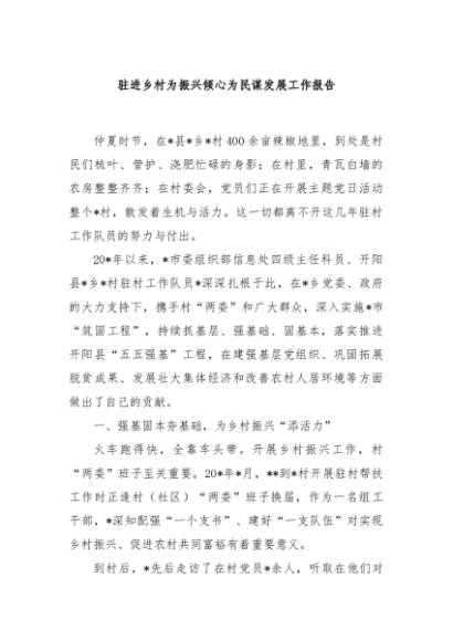 / 【七哥公文】2024年:驻进乡村为振兴倾心为民谋发展工作报告+更多免费公文+VX:QiGeGongWen2024