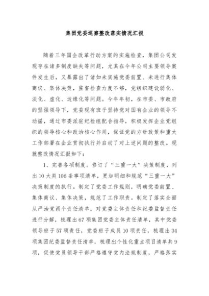 / 【七哥公文】2024年:集团党委巡察整改落实情况汇报+更多免费公文+VX:QiGeGongWen2024