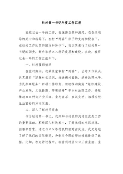 / 【七哥公文】2024年:驻村第一书记年度工作汇报+更多免费公文+VX:QiGeGongWen2024