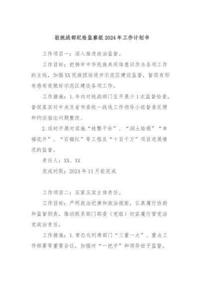 【七哥公文】2024年:驻统战部纪检监察组2024年工作计划书+更多免费公文+VX:QiGeGongWen2024