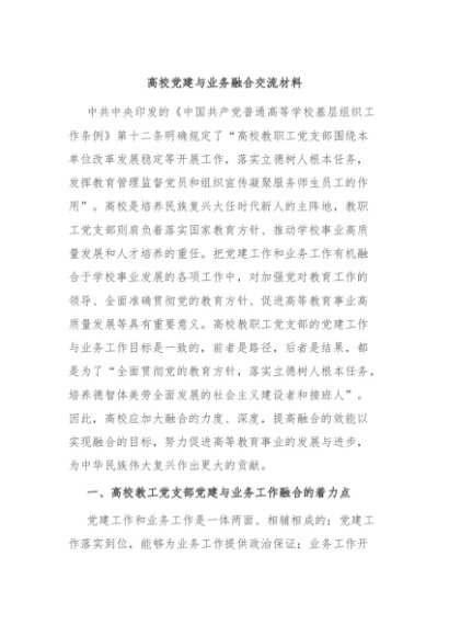 / 【七哥公文】2024年:高校党建与业务融合交流材料+更多免费公文+VX:QiGeGongWen2024