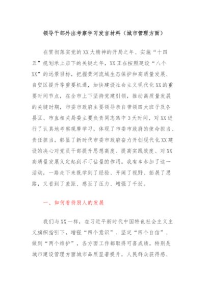 / 【七哥公文】2024年:领导干部外出考察学习发言材料(城市管理方面)+更多免费公文+VX:QiGeGongWen2024