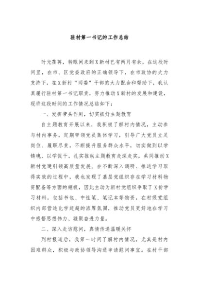 / 【七哥公文】2024年:驻村第一书记的工作总结+更多免费公文+VX:QiGeGongWen2024