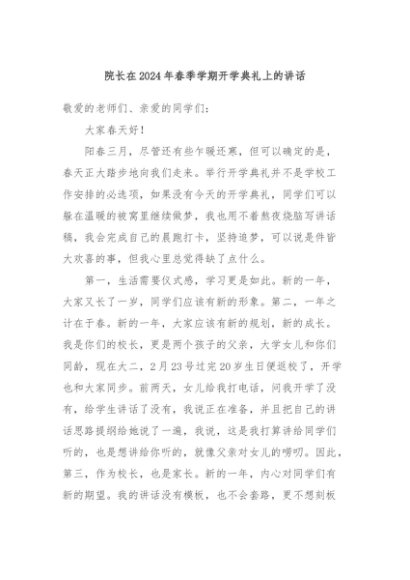 / 【七哥公文】2024年:院长在2024年春季学期开学典礼上的讲话+更多免费公文+VX:QiGeGongWen2024