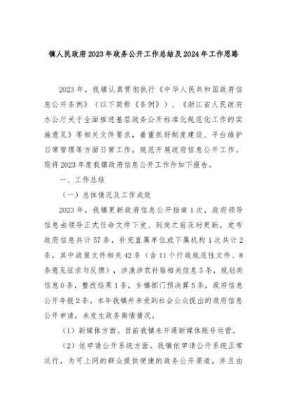 【七哥公文】2024年:镇人民政府2023年政务公开工作总结及2024年工作思路+更多免费公文+VX:QiGeGongWen2024