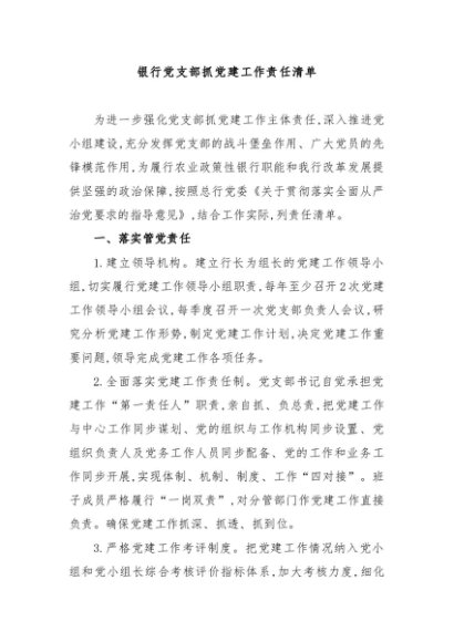 / 【七哥公文】2024年:银行党支部抓党建工作责任清单+更多免费公文+VX:QiGeGongWen2024