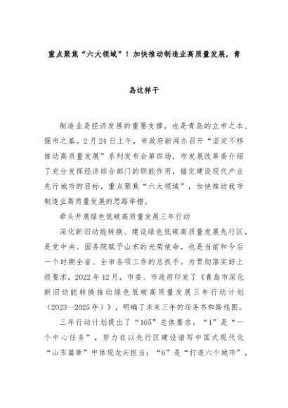 【七哥公文】2024年:重点聚焦“六大领域”!加快推动制造业高质量发展,青岛这样干+更多免费公文+VX:QiGeGongWen2024