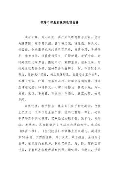 【七哥公文】2024年:领导干部最新现实表现材料+更多免费公文+VX:QiGeGongWen2024
