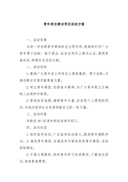 / 【七哥公文】2024年:青年岗位建功项目活动方案+更多免费公文+VX:QiGeGongWen2024
