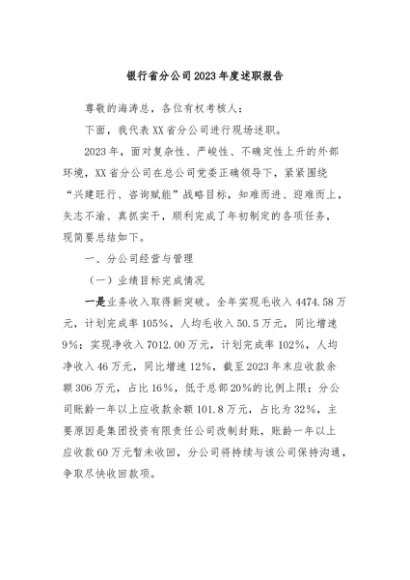 / 【七哥公文】2024年:银行省分公司2023年度述职报告+更多免费公文+VX:QiGeGongWen2024