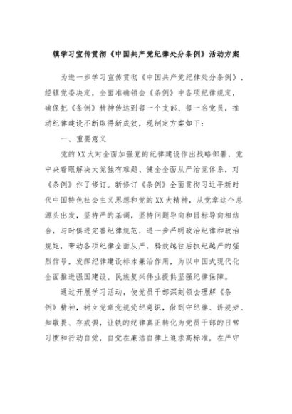 / 【七哥公文】2024年:镇学习宣传贯彻《中国共产党纪律处分条例》活动方案+更多免费公文+VX:QiGeGongWen2024